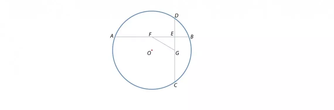 - Przez środek okręgu, czyli punkt E, prowadzimy prostą prostopadłą do cięciwy BC. Punkt przecięcia tej prostej z cięciwą oznaczamy F, a jej punkty przecięcia z okręgiem – G oraz D w ten sposób, że punkt D leży na łuku BC. Wówczas każdy z łuków BD oraz DC jest połową łuku BC.