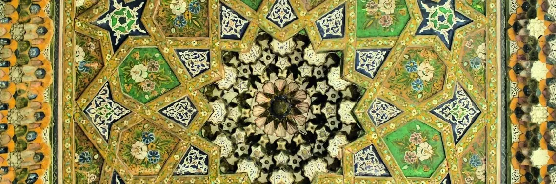 Na początek popatrzmy na przykłady dwóch różnych rozet i zastanówmy się, jakie mają cechy wspólne i jakie elementy w ich konstrukcji są rzeczywiście istotne. Obie rozety pochodzą z sufitu w meczecie Bolo Haouz w Bucharze. Jest to jeden z historycznych obiektów tego małego miasta w Uzbekistanie. Meczet został wybudowany w roku 1712 w pobliżu cytadeli Arc w dzielnicy Registan. W Bucharze jest również Registan, podobnie jak w Samarkandzie. W tej chwili ten meczet jest wpisany na listę światowego dziedzictwa UNESCO. Położony z dala od centrum Buchary, jest rzadziej odwiedzany przez turystów i jest to jeden z niewielu czynnych meczetów w tym mieście.Konstrukcje różnych gwiazd mieliśmy w większości dotychczasowych projektów i przykładów. Przypomnijmy, jak to do tej pory robiliśmy. W załączonym przykładzie skonstruujemy bardzo prosty gereh. Z powodu jego prostoty nie znajdziemy go w żadnej z zabytkowych budowli, ale nam on wystarczy do tego, aby zademonstrować konstrukcję gwiazdy.