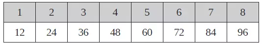 Jeżeli w klasie piątej przejdziemy do dzielenia pisemnego przez liczby wielocyfrowe, wówczas MIEŚCICIEL może przygotować sobie pomocniczą tabelkę. Gdy będziemy musieli wykonać działanie \(2305 : 12\), wówczas tabelka MIEŚCICIELA, z kolejnymi wielokrotnościami liczby 12, mogłaby wyglądać następująco: