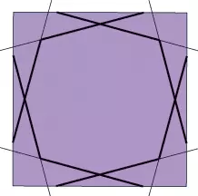 Odcinki pokazane na tej rycinie mogą służyć jako schemat do konstrukcji kilku różnych wzorów w dwunastokącie foremnym. Te tworzące duże kąty w miejscu przecięcia odcinków będą zostawiały wewnątrz dwunastokąta duże puste przestrzenie, które będziemy mogli użyć do wpisania tam odpowiednio dużej rozety.