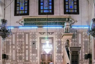 W ostatniej części szkicu 6 zajmiemy się wzorami geometrycznymi z ambony w Meczecie Umajjadów. W każdym meczecie mamy kilka ważnych miejsc. Są nimi mihrab, czyli wnęka wskazująca kierunek modlitwy wiernych, ambona najczęściej określana jako minbar lub minber, wreszcie często możemy znaleźć tzw. pulpit, który jest pewnego rodzaju podwyższeniem, z którego czytany jest Koran. W Meczecie Umajjadów ambona ma bardzo interesujące wzory i jest wyjątkowo dekoracyjna. O czym się za chwilę przekonamy.