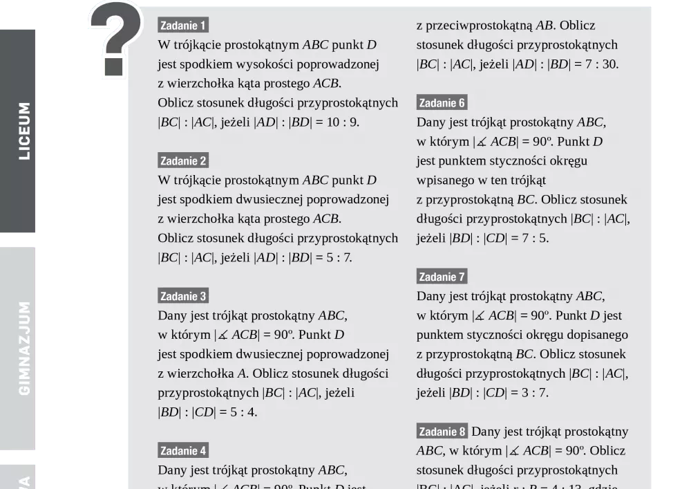 Trójkąt prostokątny − stosunki odcinków