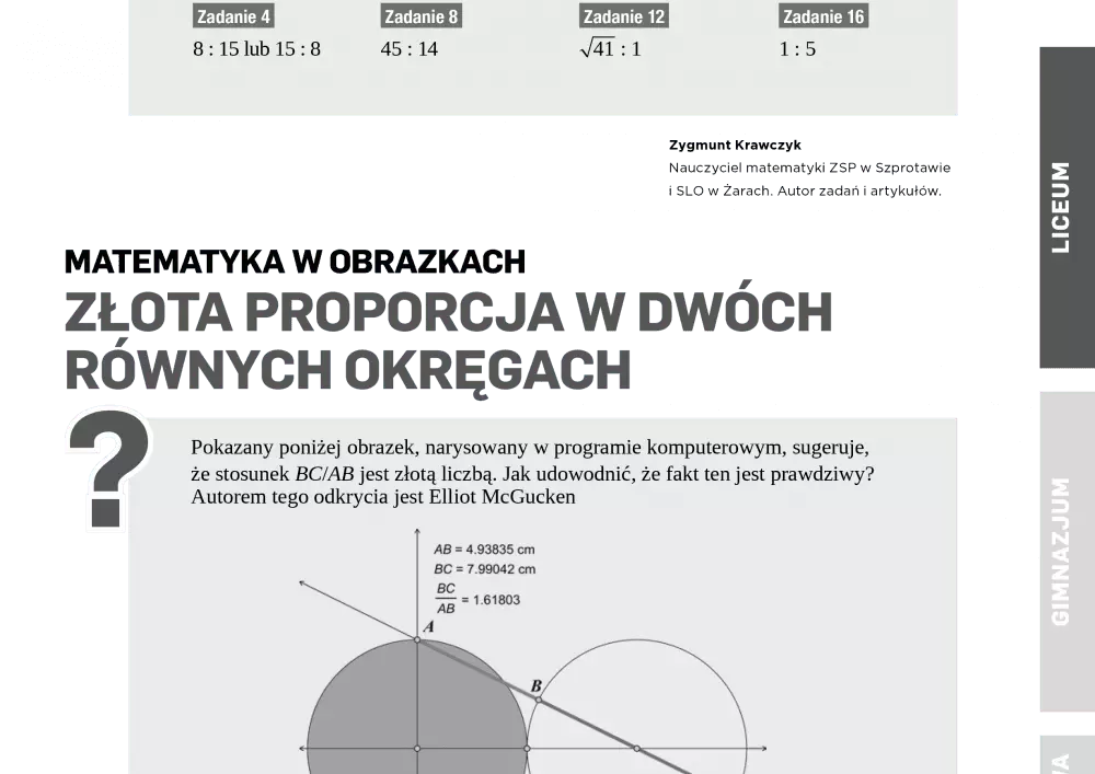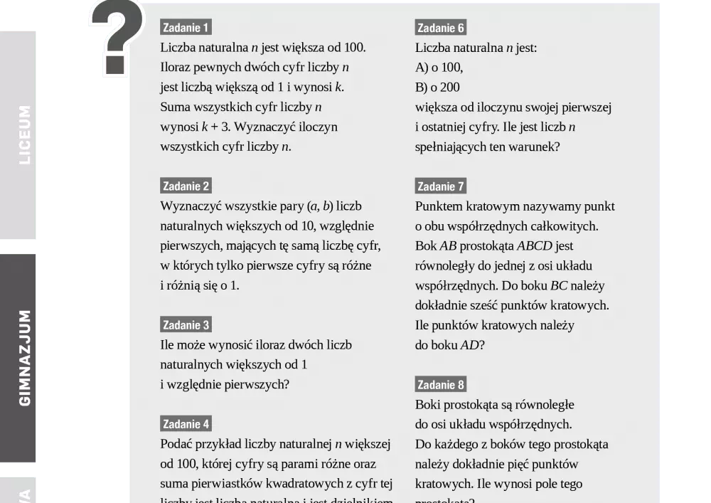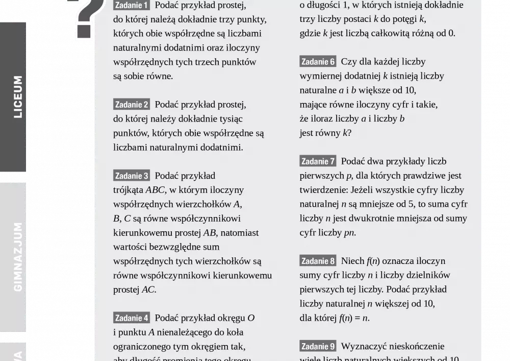 W niniejszym numerze czasopisma nie zabrakło przykładowych testów i sprawdzianów z matematyki oraz gotowych do wykorzystania kart pracy. W listopadzie i grudniu Agnieszka Zielińska przekazuje Państwu grę logiczną kształcącą umiejętność wyłączania czynnika z wyrazów sumy algebraicznej poza nawias, zaś Michał Kremzer przedstawia zadania sprawdzające zdolność analizy i interpretacji problemu, rozumowania i argumentacji, syntezy faktów i myślenia pamięciowego oraz umiejętności heurystyczne. Oprócz przykładowych testów i sprawdzianów z matematyki, publikujemy również zestawy zadań adresowane do uczniów starszych klas gimnazjów i licealistów.