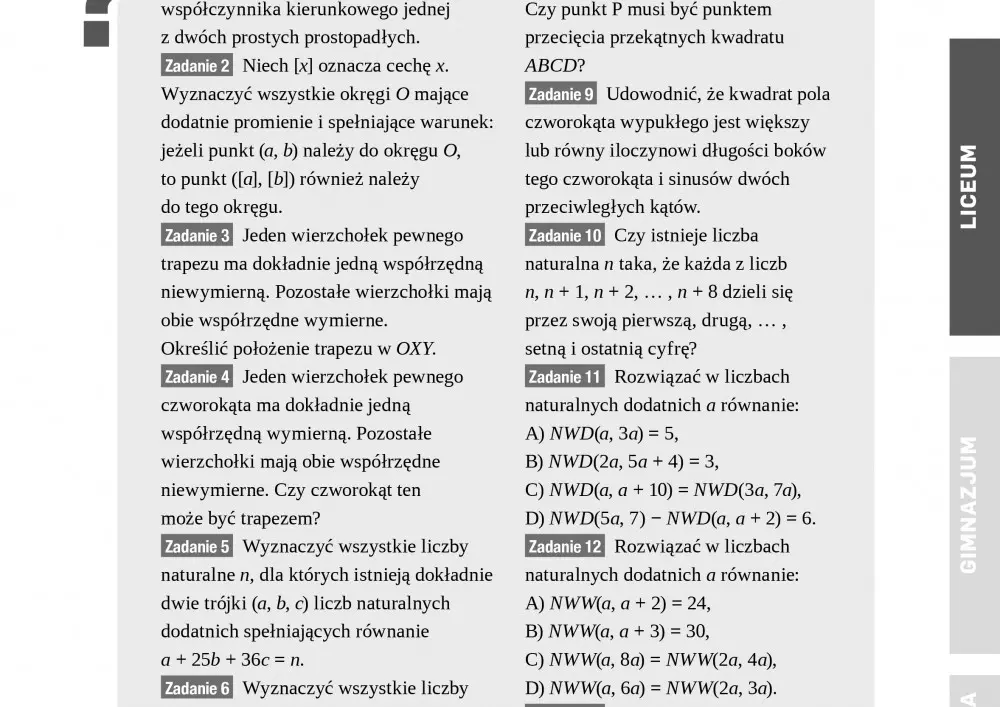 W bieżącym numerze czasopisma nie zabrakło przykładowych testów i sprawdzianów z matematyki oraz pomocy dydaktycznych ułatwiających codzienną pracę nauczyciela. Michał Kremzer przekazuje Państwu zestaw zadań przeznaczony do nauczania matematyki w młodszych i starszych klasach szkół średnich. Oprócz testów i sprawdzianów z matematyki, publikujemy również ćwiczenia rozwijające umiejętność obliczania pola powierzchni i objętości wielościanów.