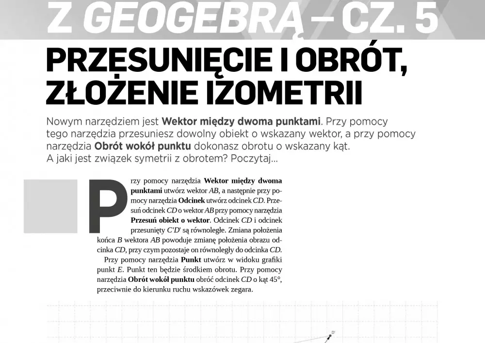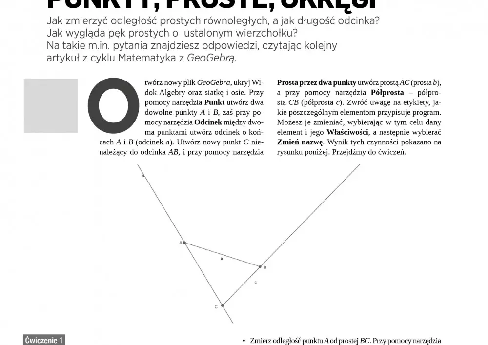 Jak zmierzyć odległość prostych równoległych, a jak długość odcinka? Jak wygląda pęk prostych o ustalonym wierzchołku? Jaki jest związek symetrii z obrotem? Dowiedzą się tego Państwo czytając trzy teksty Janusza Karkuta z nowego cyklu artykułów „Matematyka z GeoGebrą”. Seria krótkich artykułów i dołączonych do nich ćwiczeń zainspiruje Państwa do nauczania matematyki z GeoGebrą – bezpłatnym oprogramowaniem edukacyjnym wspierającym uczniów i nauczycieli na wszystkich poziomach edukacji.